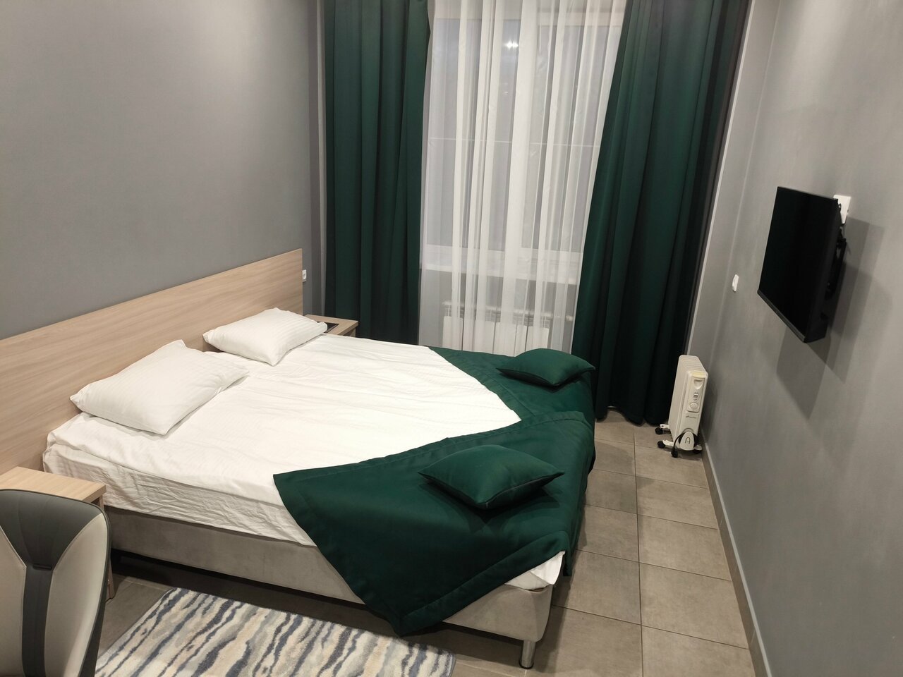 Номера чистые, все новое, кондиционер, холодильник, душ, телевизор , фен, wifi. На ресепшене очень приятный администратор Анастасия, которая в подробностях рассказала обо всем. Большое ей спасибо! В коридорах стоит кулер с водой, гладильная доска, утюг. На первом этаже уютный ресторан. Завтраки включены в стоимость! Гостиница находится в удобном месте, в шаговой доступности все магазины, можно прогуляться по городу.